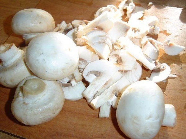 Грибы нарезаем пластинками и обжариваем до золотистого цвета.