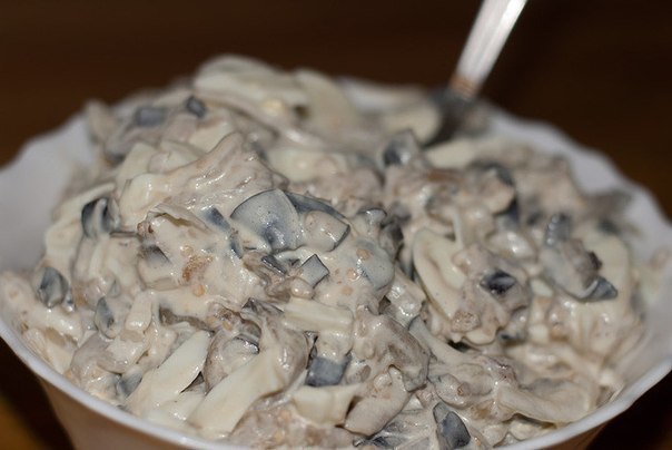 Детки мои баклажаны вообще не любят, а этот салат уплетали за обе щеки и даже не поняли что там баклажаны, доченька сказала что салатик с грибочками ))))