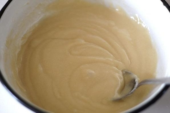 Яйца смешать с сахаром, добавить неполный стакан муки. Должно получиться негустое тесто.