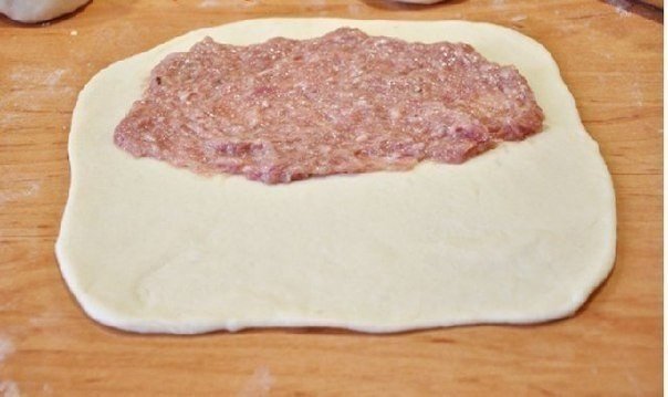Замесить дрожжевое тесто: смешать сухие дрожжи с мукой, добавить теплое молоко, сахар, соль. Тесто постоянно вымешивать, в конце добавить растительное масло. Накрыть тесто полотенцем, оставить подходить на 20 мин. Фарш потомить, не зажаривая, на сковороде.