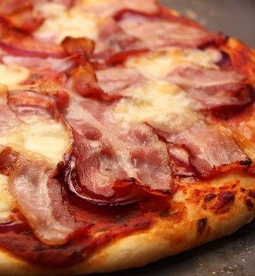 6. Выпекайте пиццу 20-30 минут при температуре 200 градусов. Готовность проверяйте по мягкости коржа. Не передерживайте пиццу в духовке, иначе тесто может получиться слишком сухим и твердым.