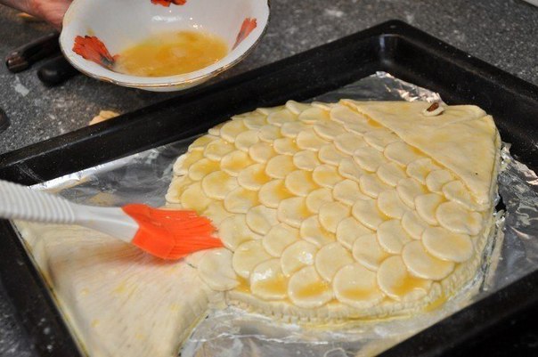Завернуть начинку. Туго обвязать вырезку нитью, чтоб при запекании не потеряло форму. Посолить, поперчить снаружи. Мясной рулет уложить на противень, поставить в разогретую до 200 С градусов духовку на 30-35 минут, до готовности.Готовой вырезке дать 5-10 минут «отдохнуть»,нарезать, подавать на стол.