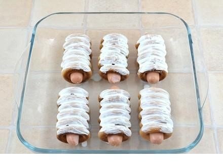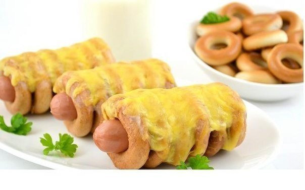 Подавать сосиски в сушках обязательно горячими (только что из духовки).