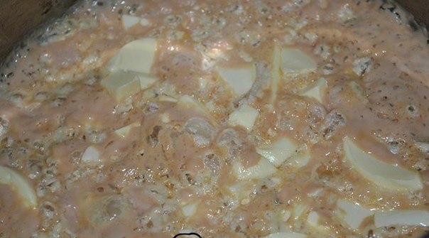 Яйца слегка взбить, масло порезать кусочками, смешать все продукты с теплым молоком и оставить в теплом месте на 8-12 часов (смело оставляйте на ночь).