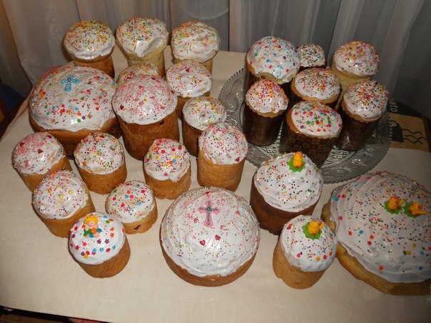 градусов. Выкладывать готовые куличи на чистое полотенце на бок, через 5 минут перевернуть на другой бок. Накрывать полотенцем. Смазать