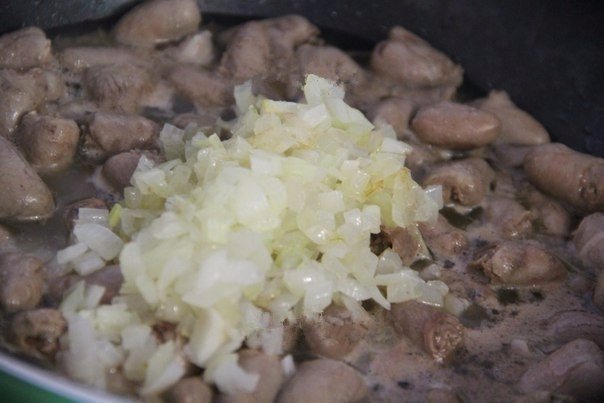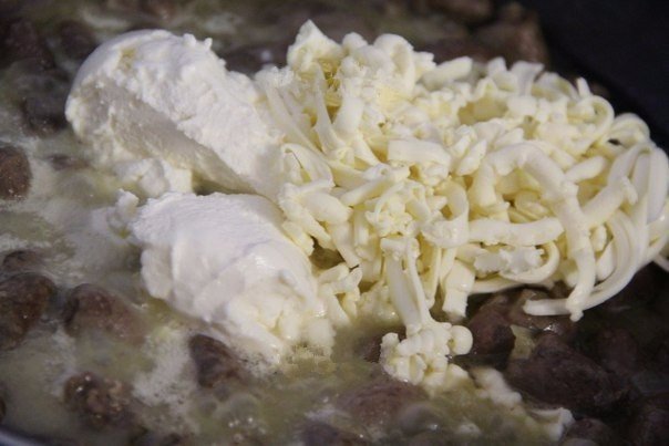 Куриные сердечки в сырном соусе
