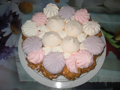 Я делал большой торт, в три слоя. И заранее купил зефир трёх сортов, для разнообразия.