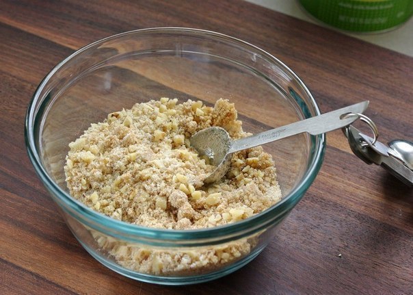 Очистите, выньте сердцевину и нарежьте яблоки. Выложите в миску и смешайте с корицей, коричневым и обычным сахаром, мукой. Оставьте на 20 минут, чтобы яблоки пустили сок. В отдельной миске смешайте орехи, 2 вида сахара и сухари. Раскатайте 1 лист теста, присыпьте ореховой смесью и сверху выложите яблочную. Закройте начинку, завернув края теста. Повторите со вторым листом и оставшейся начинкой.